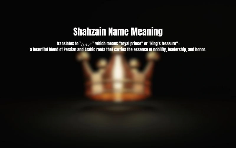 Shahzain name meaning in Urdu is “شہزین” which translates to “royal prince,” “king’s treasure,” or “ornament of royalty.” It combines “Shah” (king) with “Zain” (beauty/treasure), creating a name that symbolizes nobility and precious value.